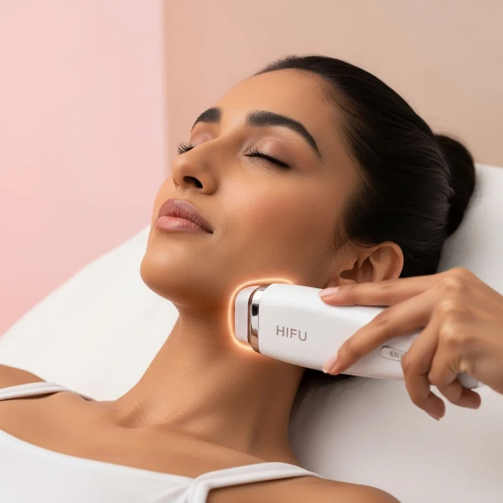 Watch Dr. Jaishree perform HIFU treatment, demonstrating focused ultrasound technology for non-invasive skin tightening and lifting.